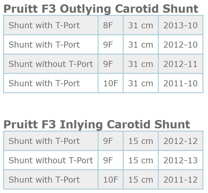 Shunt de carótida descartavel de uso externo, modelo original PRUITT F3 de duplo lumen, montado em um tubo principal de poliuretano biocompativel com dois braços, balões de latex natural em suas extremidades distal e proximal. Indicado o uso em endarterectomia de carótida, como um conduto temporario entre as arterias carótida comum e carótida interna permitindo a perfusão cerebral continua, durante os procedimentos de carótida.